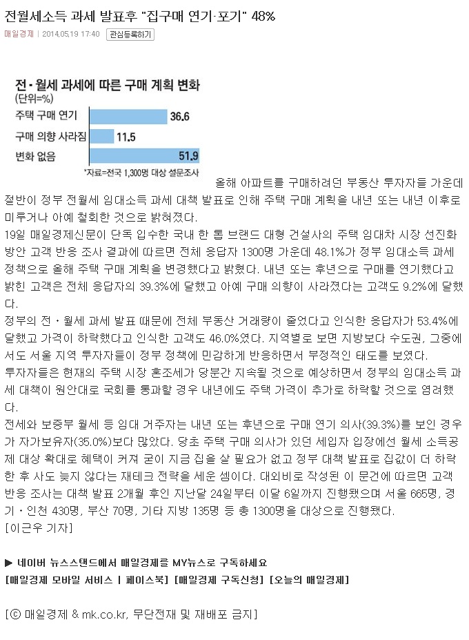 Àü¿ù¼¼¼Òµæ °ú¼¼ ¹ßÇ¥ÈÄ "Áý±¸¸Å ¿¬±â¡¤Æ÷±â" 48%