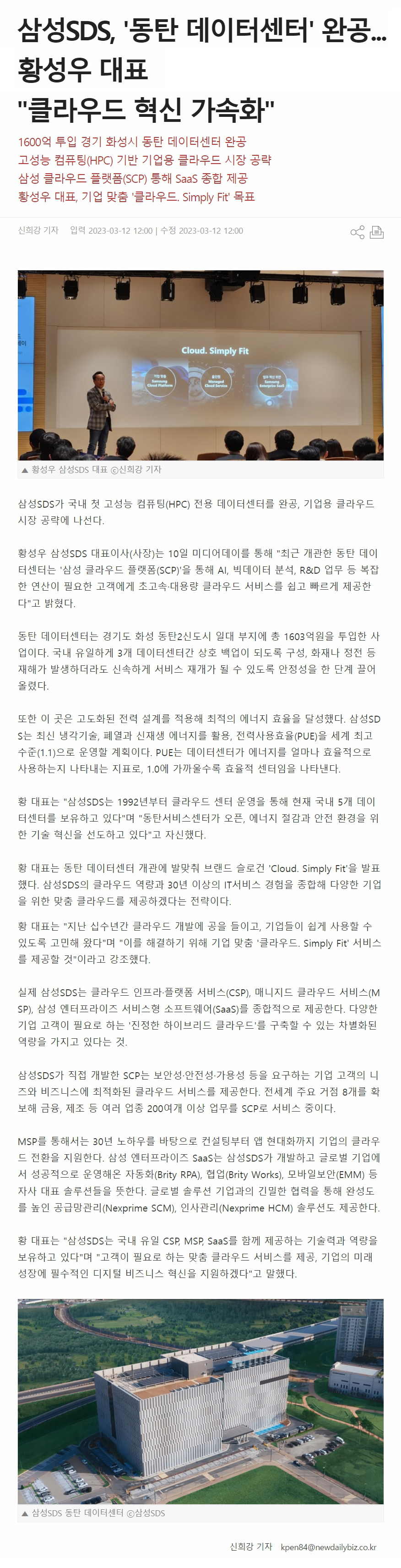»ï¼ºSDS, 'µ¿Åº µ¥ÀÌÅͼ¾ÅÍ' ¿Ï°ø... Ȳ¼º¿ì ´ëÇ¥ "Ŭ¶ó¿ìµå Çõ½Å °¡¼ÓÈ"