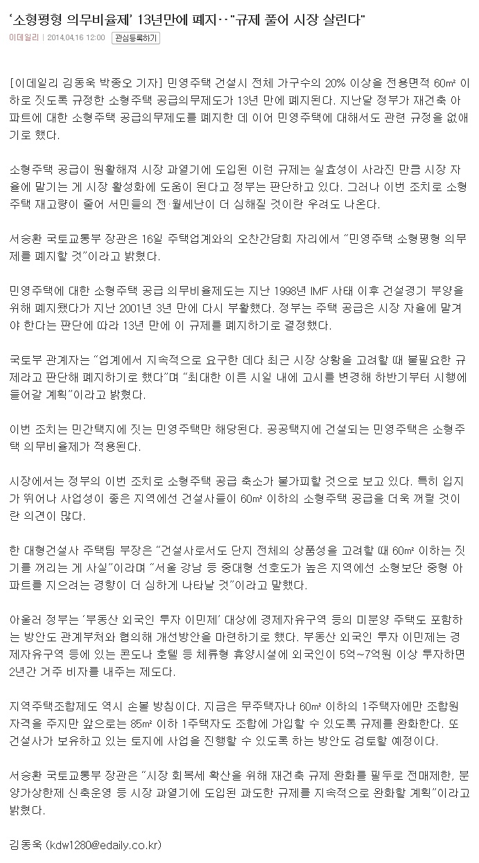 ¡®¼ÒÇüÆòÇü Àǹ«ºñÀ²Á¦¡¯ 13³â¸¸¿¡ ÆóÁö¡¥"±ÔÁ¦ Ç®¾î ½ÃÀå »ì¸°´Ù"