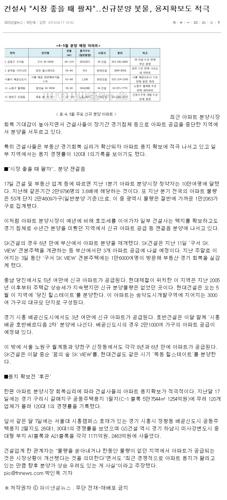 °Ç¼³»ç "½ÃÀå ÁÁÀ» ¶§ ÆÈÀÚ"..½Å±ÔºÐ¾ç º¿¹°, ¿ëÁöÈ®º¸µµ Àû±Ø