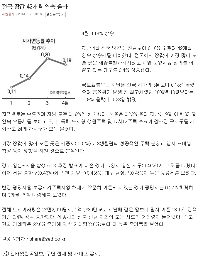 Àü±¹ ¶¥°ª 42°³¿ù ¿¬¼Ó ¿Ã¶ó