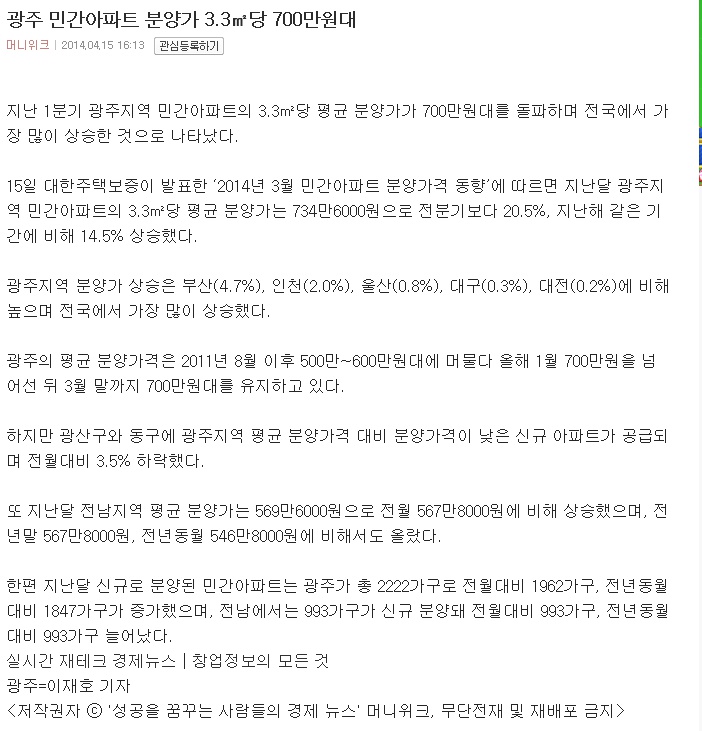 ±¤ÁÖ ¹Î°£¾ÆÆÄÆ® ºÐ¾ç°¡ 3.3§³´ç 700¸¸¿ø´ë