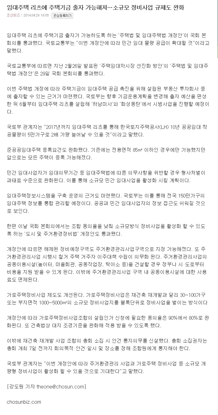 ÀÓ´ëÁÖÅà ¸®Ã÷¿¡ ÁÖÅñâ±Ý ÃâÀÚ °¡´ÉÇØÁ®¡¦¼Ò±Ô¸ð Á¤ºñ»ç¾÷ ±ÔÁ¦µµ ¿ÏÈ