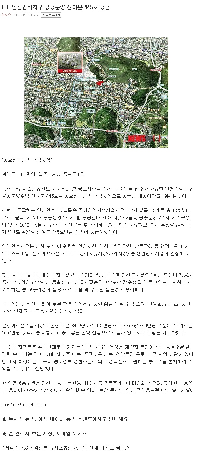 LH, ÀÎõ°£¼®Áö±¸ °ø°øºÐ¾ç ÀÜ¿©ºÐ 445È£ °ø±Þ